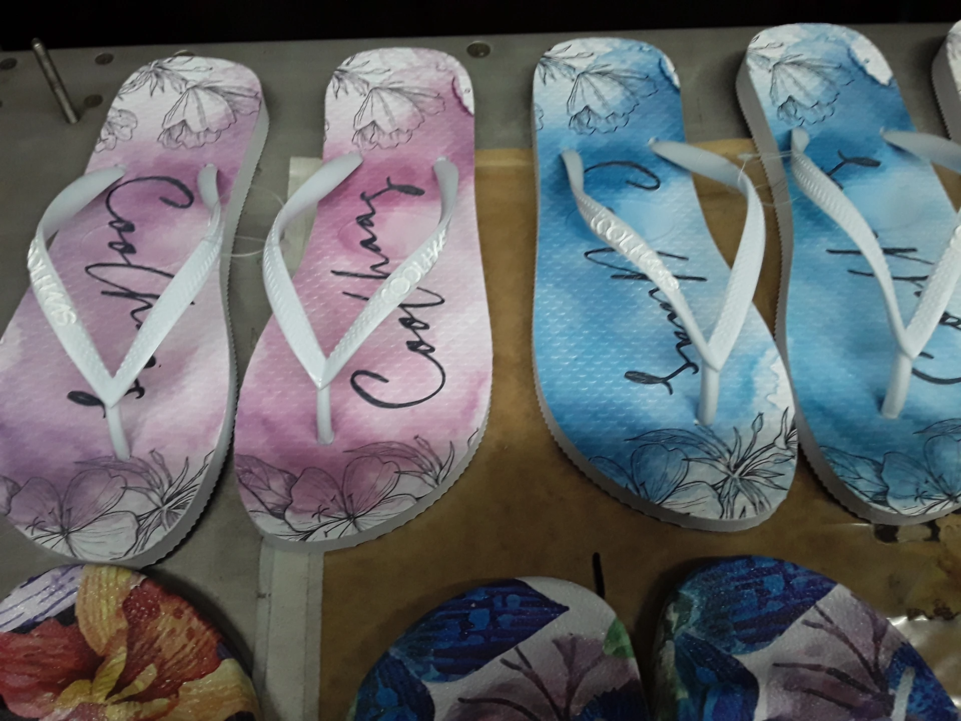 Hacemos fajas para todo tipo de chanclas o chinelas, trabajamos en serigrafia, impresion full color y relieves con alta frecuencia.